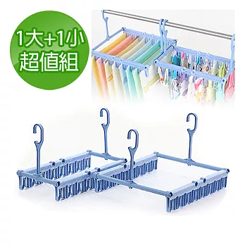 X型折疊不鏽鋼伸縮衣架和曬衣網架兼具使用方便且可摺疊收納,可晾曬棉被、大型衣物和毛線針織冬衣等,適用租屋一族和小家庭。